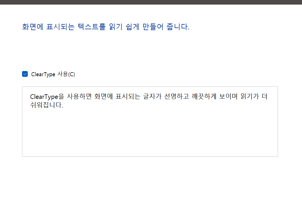 2. ClearType 텍스트 설정 다시 적용